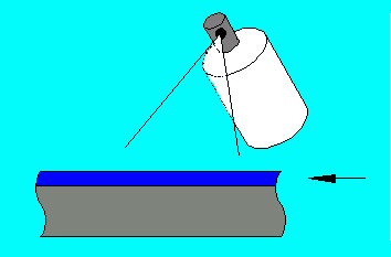 Here is the preferred direction of aiming the paint spray. There is no build up of the second colour against the masking material.