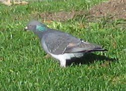Most of the pigeons are gray, but some I saw had black and white feathers. I saw them at the beach, fire station, electrical building and at the gas station. They are all over Beaches. I saw two dating and two cleaning themselves in the sun. They eat bread and anything they find. |