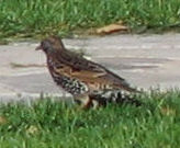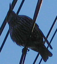 A sparrow is smaller than a starling. It is brown. Sparrows hide in leafs, in the bushes, they are at the beach, and you can see them on the street as well. They eat and hop on my balcony. They are also a backyard bird. They chirp all the time. I saw them eating bread on my balcony and I saw them eating croutons behind the restaurant. |