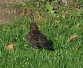 A starling has white spots on its black body. You can find starlings in a garden, on a telephone line, anywhere! A starling is a backyard bird. They are most common birds where I live. They hop all over: on the ground, on trees, and on the roof tops. They come to my balcony. I see them in small and large groups. They chirp all the time. I found out starlings eat berries, grass, bugs and bread. |