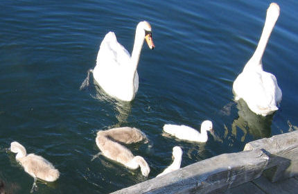 SWAN They are white and have long necks. Their babies are gray. Story the Ugly Duckling is about the baby swan that grew up to beautiful white swan. During the summer the swans had babies. I saw them at Ashbridges Bay. There were five baby swans. They were swimming with parents. They were swimming around boats eating nachos that people were throwing. This fall I saw a swan. It was alone swimming in the water in Ashbridges Bay. |