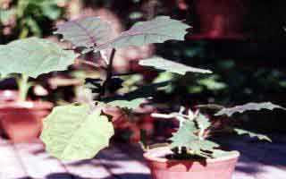 Catalog # 5 - An exciting prehistoric looking plant with purple tinged veins that are curiously inverted with the broad end upward. Attractive scarlet flowers are followed by tomato shaped orange-red fruit that tastes like a delectable apricot often used in homemade jams and natural preserves. |
