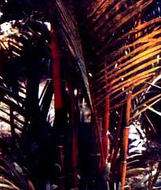 Catalog #7 - By far one of the more attractive palms, its multi slender bamboo cane fronds up to 4 ft (1.2 cm) pointing upwards with clusters of small fruit. Ideal as a houseplant as the root adapts well to a potted condition. Needs minimum sunlight, does best in shade but with a well textured and aerated soil.