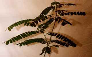 Catalog #31 - A classically erect tree that does well indoors. Slender unbranched trunk topped by bipinnate mimosae type leaves . Long blooming months bring golden clusters. Seeds require scoring.